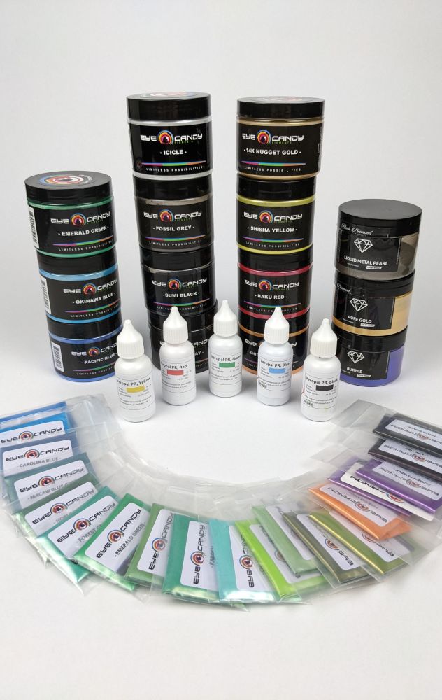 Pro neprůhledné odlitky využíváme kvalitní metalické pigmenty amerických značek Eye Candy Pigments nebo Black Diamond Pigments.